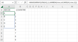 Formula to split text into cells one character at a time.(Microsoft Excel)