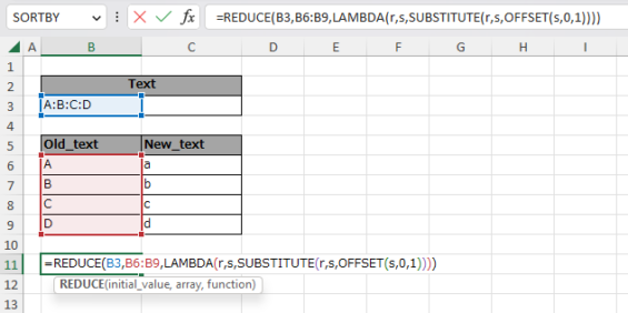 Japanese version. The SUBSTITUTE function for replacing text only supports replacing one text, not multiple texts. Here is how to replace multiple texts without using macros. Procedure. The SUBSTITUTE function returns the resulting replaced text.Since the substituted text can then be used as an argument to another SUBSTITUTE function, multiple text substitutions are possible by nesting SUBSTITUTE functions. Example of entering formulas in multiple cells. We will replace “A:B:C:D” with one character at a time.First, replace “A” with “w”. This can be repeated to replace any number of texts. Example of entering a formula in a single cell. Conventional Method. Multiple SUBSTITUTE functions are valid for a single cell. However, … Continue reading How to replace multiple texts with the SUBSTITUTE function.(Microsoft Excel)