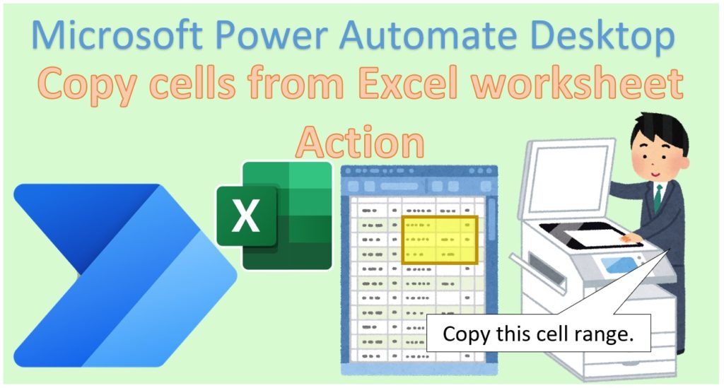 The copied content is pasted using Paste cells to Excel worksheet Action.