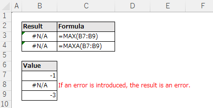 If a string is included, the MAX function ignores it, but the MAXA function treats it as 0.